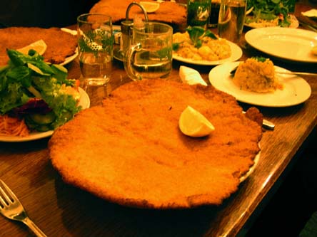 Wiener Schnitzel : Panírozott borjúszelet.Körítésként sohasem adnak hozzá mártást.